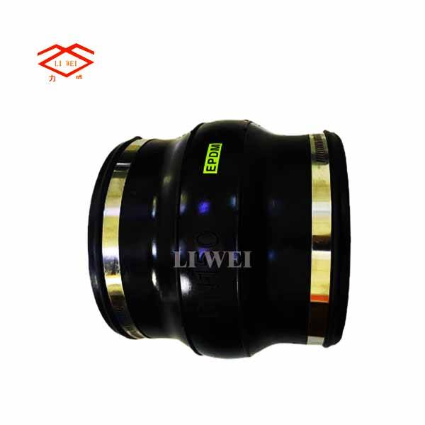 卡箍式橡膠接頭,采用卡箍來代替法蘭盤和螺栓,使用時(shí),可方便地將卡箍式橡膠接頭的兩管口分別套裝在要連接的管道上,通過卡箍將橡膠接頭與管道固定連接;拆卸時(shí)松開所述卡箍即可。從而達(dá)到補(bǔ)償管道因熱脹冷縮,輸水所產(chǎn)生的位移量之目的。